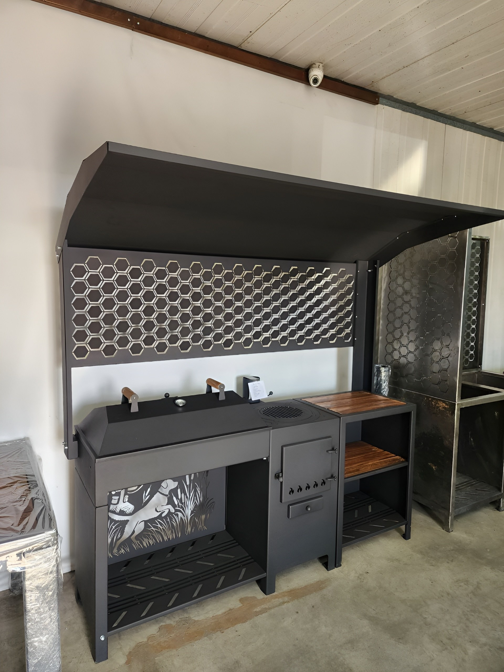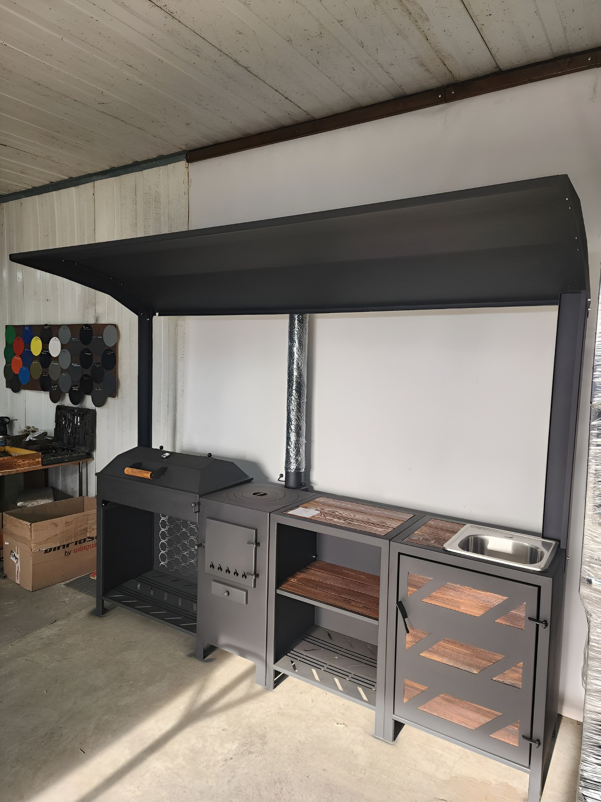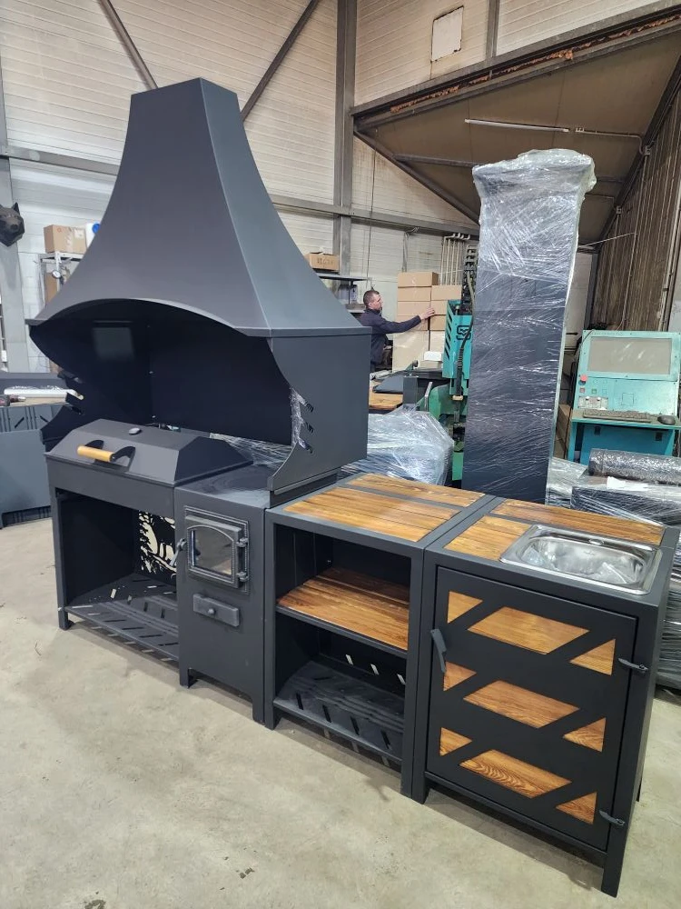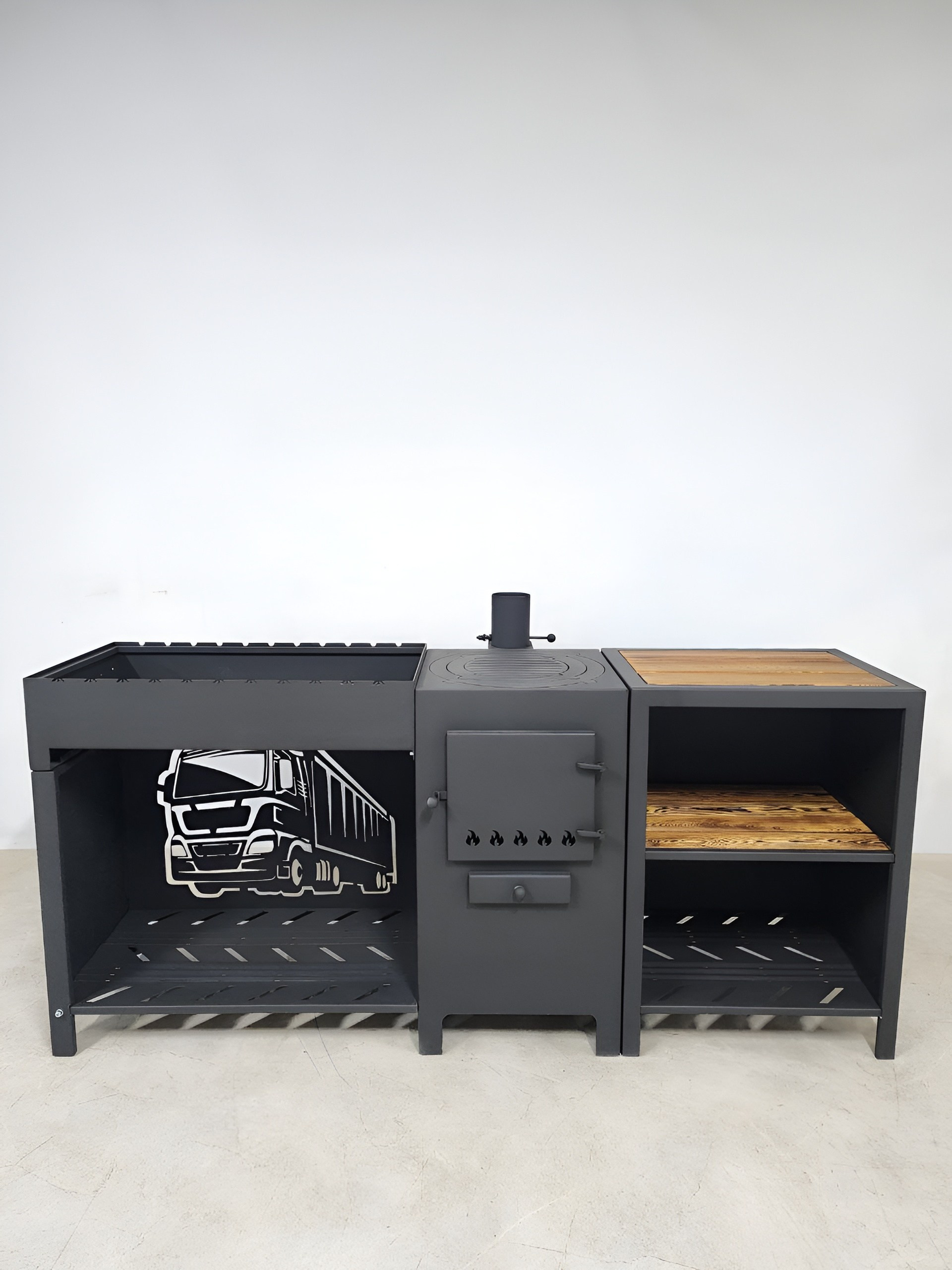 «Виктория» мангал-гриль, печь под казан с дровницей