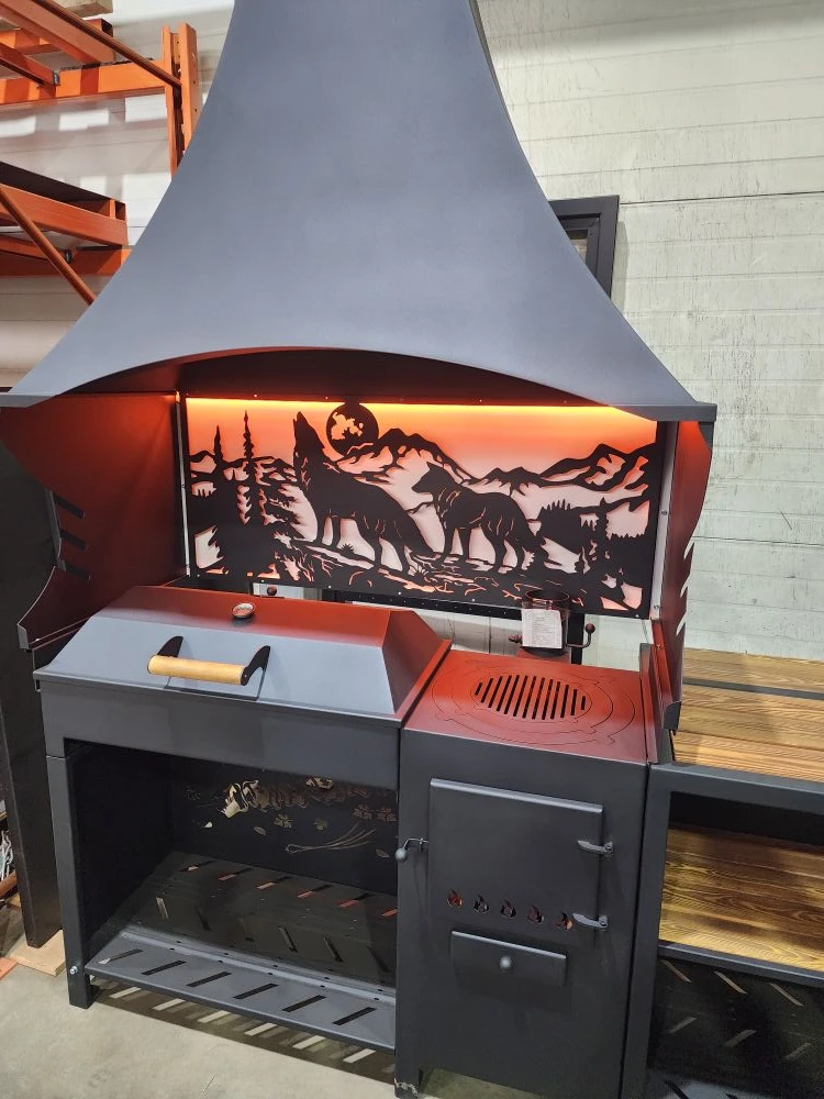 «Импульс» мангалы с резным рисунком и крышкой барбекю