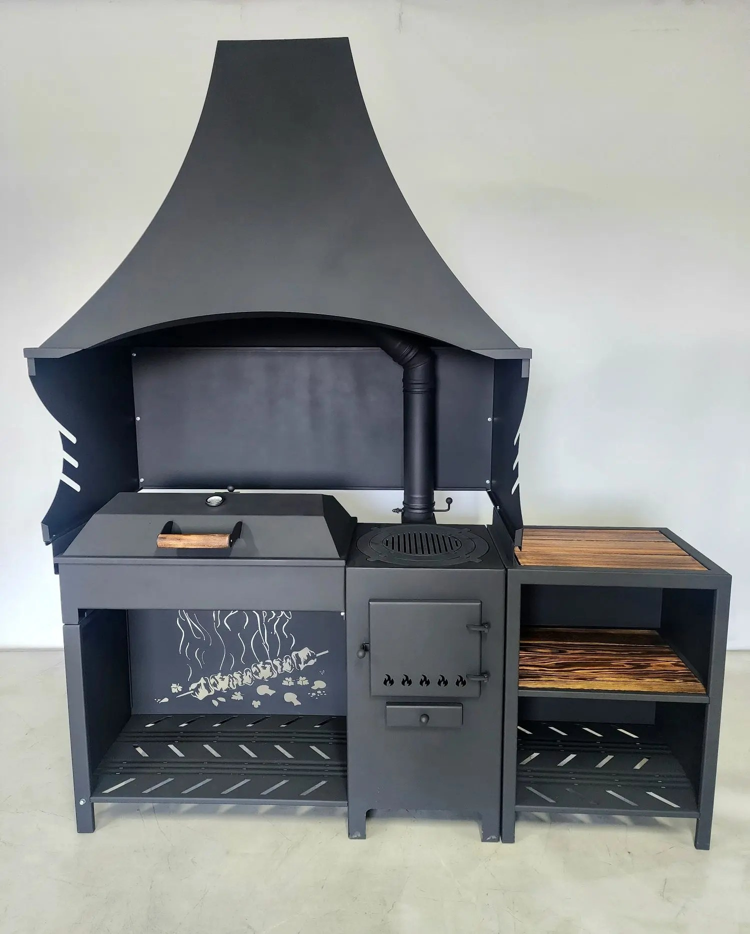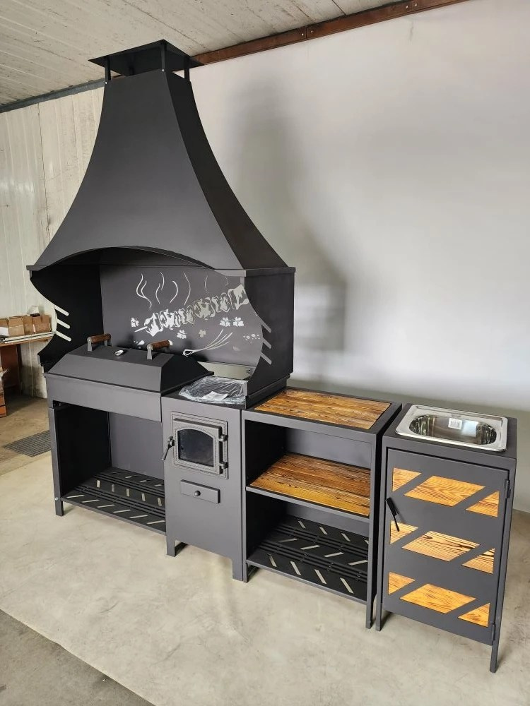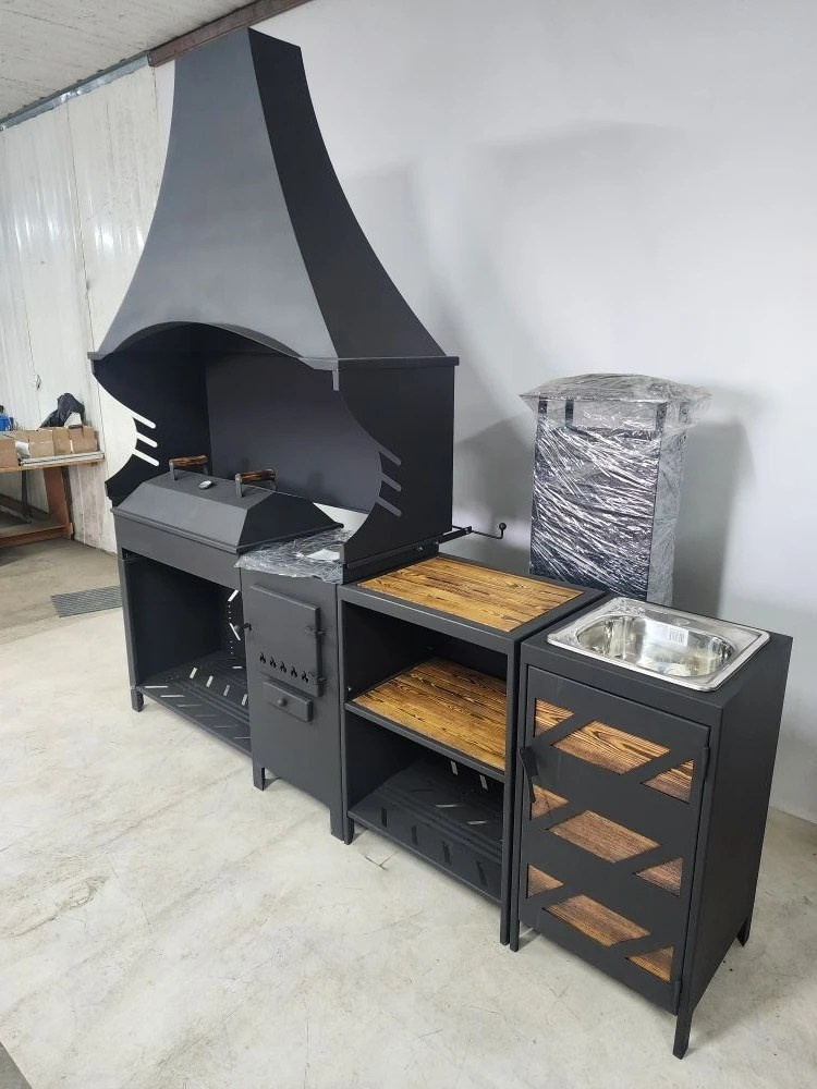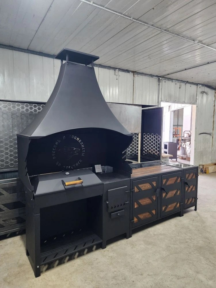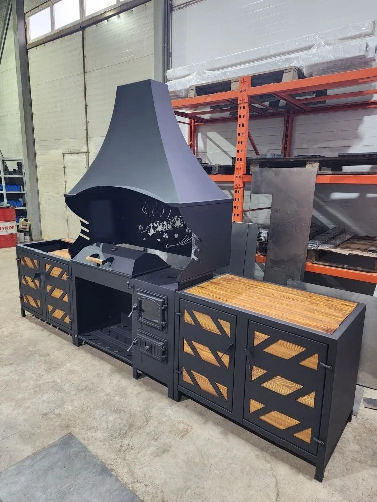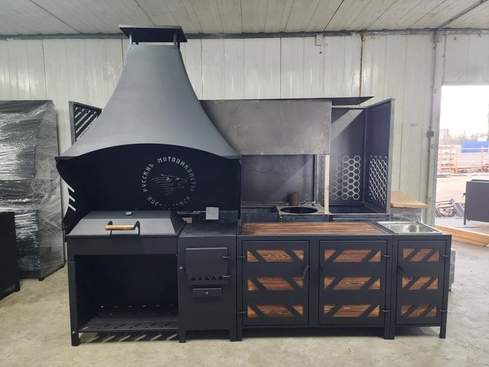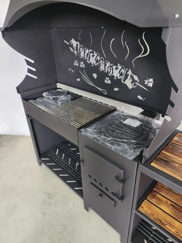 «Виктория» мангал-гриль, печь под казан с дровницей