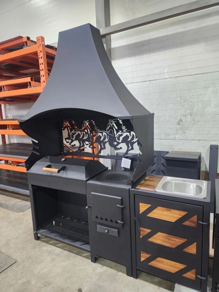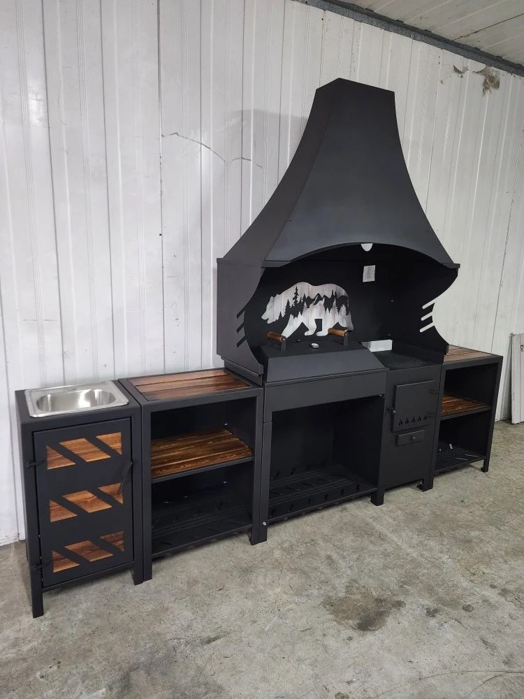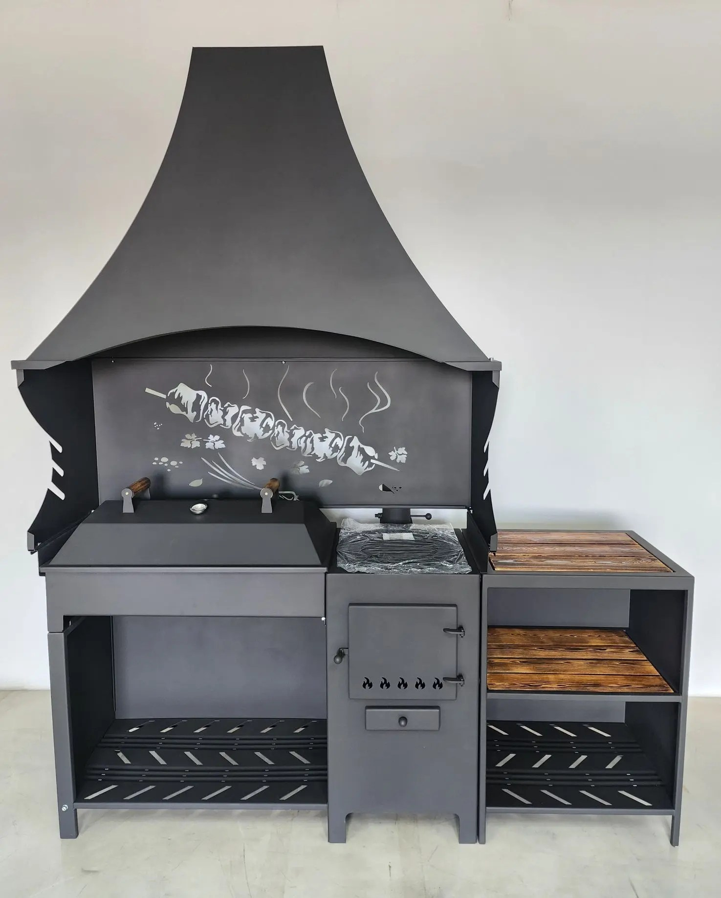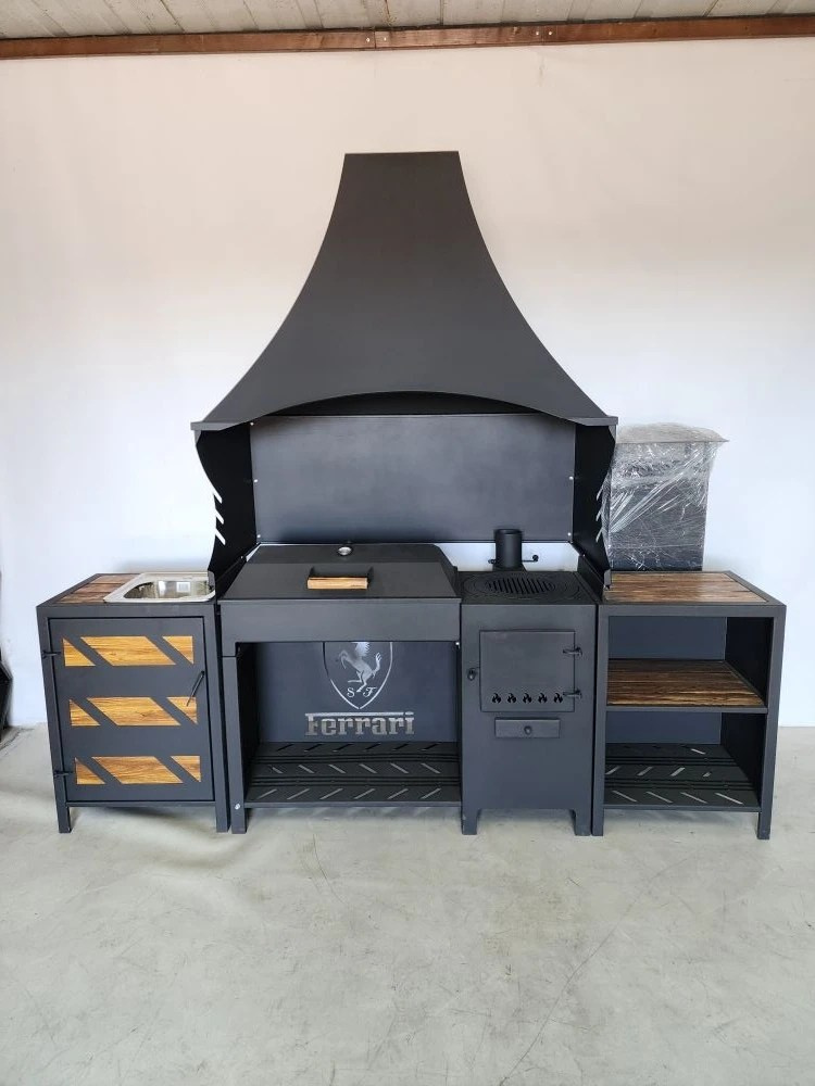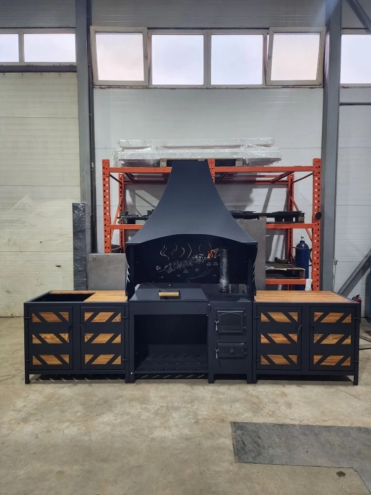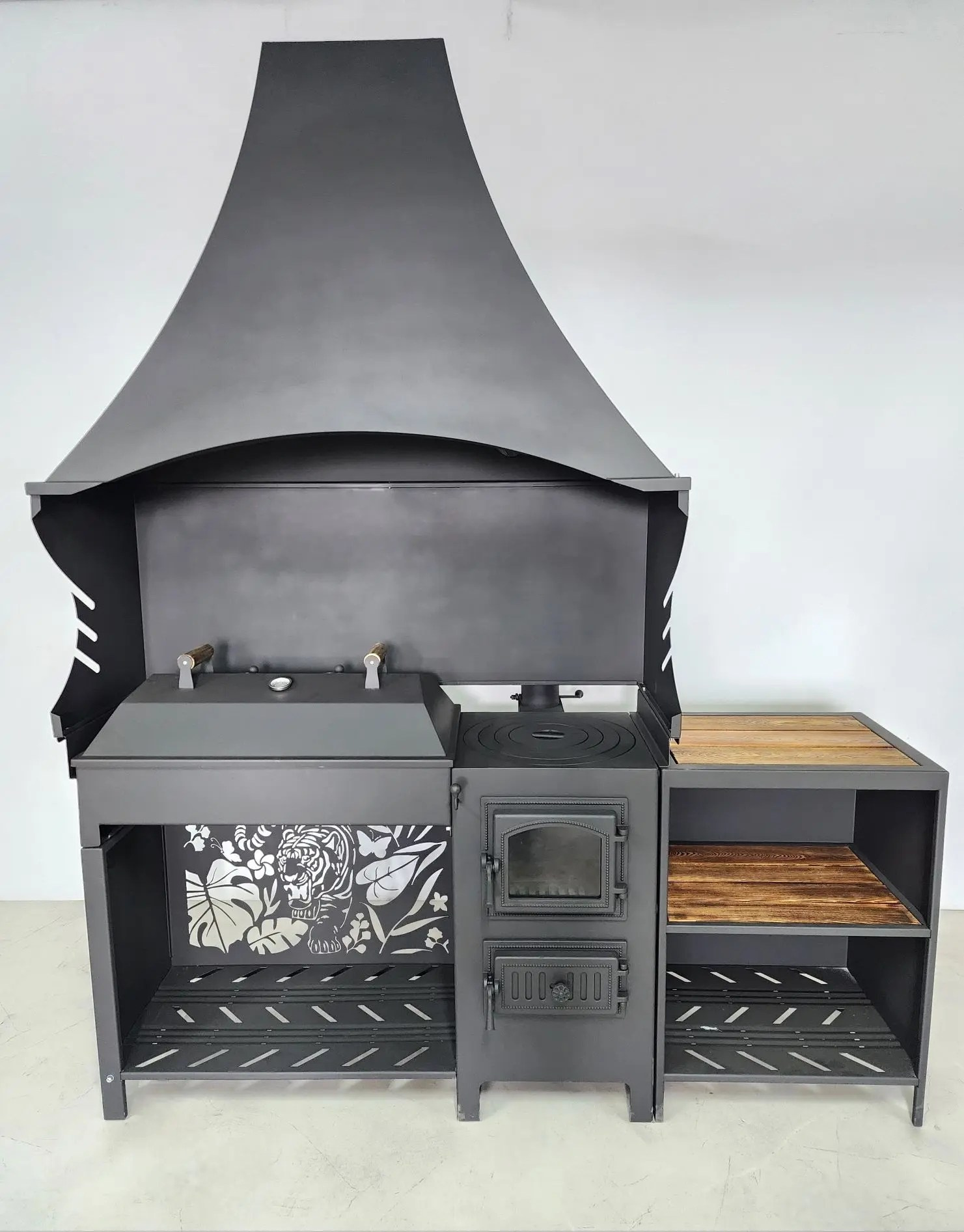 «Виктория» мангал-гриль, печь под казан с дровницей