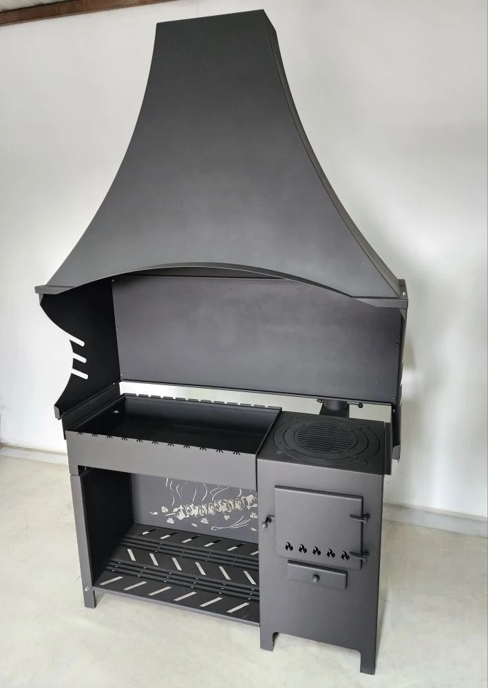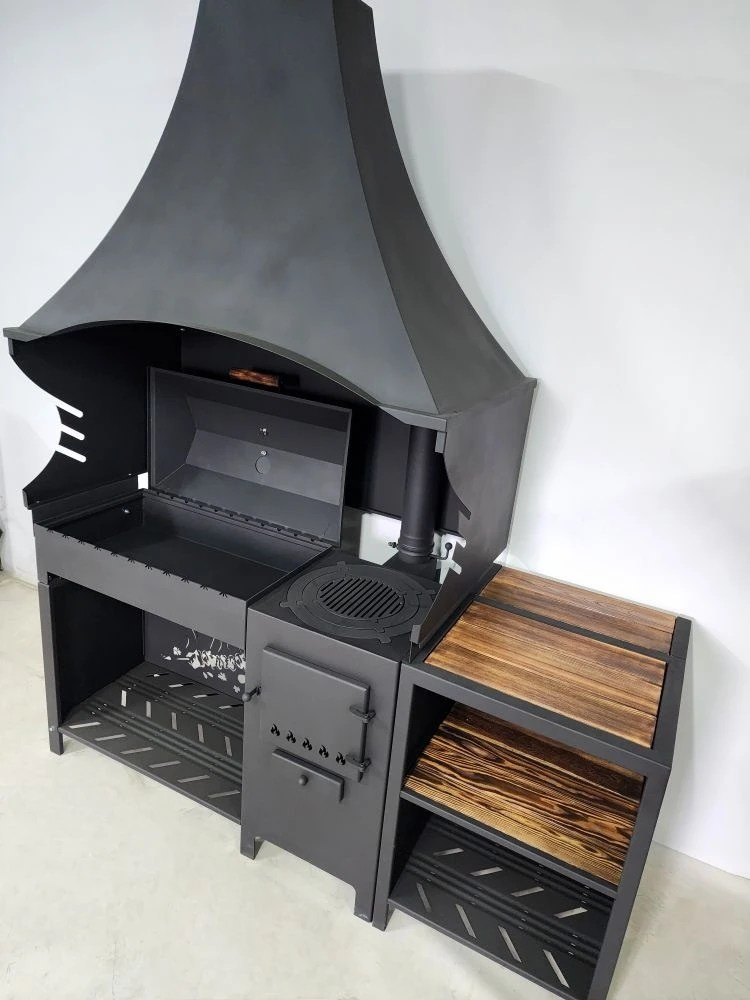 «Виктория» мангал-гриль с печью под казан и крышкой барбекю